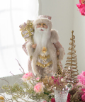 贈り物を大切に抱えた優しい表情のサンタクロースのオブジェは、明るく穏やかなクリスマス演出には欠かせないアイテムです。
