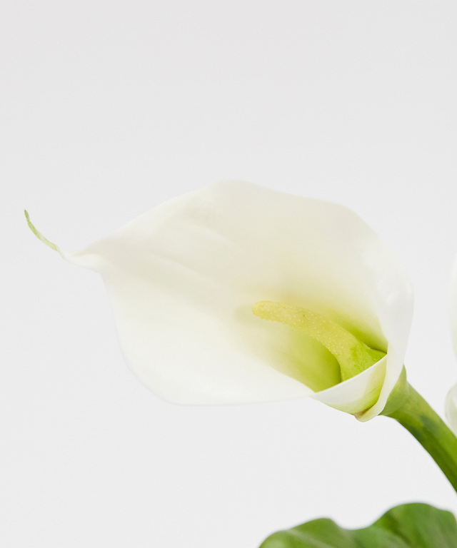 カラーの自然なステムのラインを生かしたシンプルなデザインです。すらっとしたフォルムがしなやかで美しく、思わず触れてみたくなるほど瑞々しい質感のカラー。シャープなデザインで、シンプルでスタイリッシュな印象に。花言葉は「乙女のしとやかさ」「華麗なる美」。