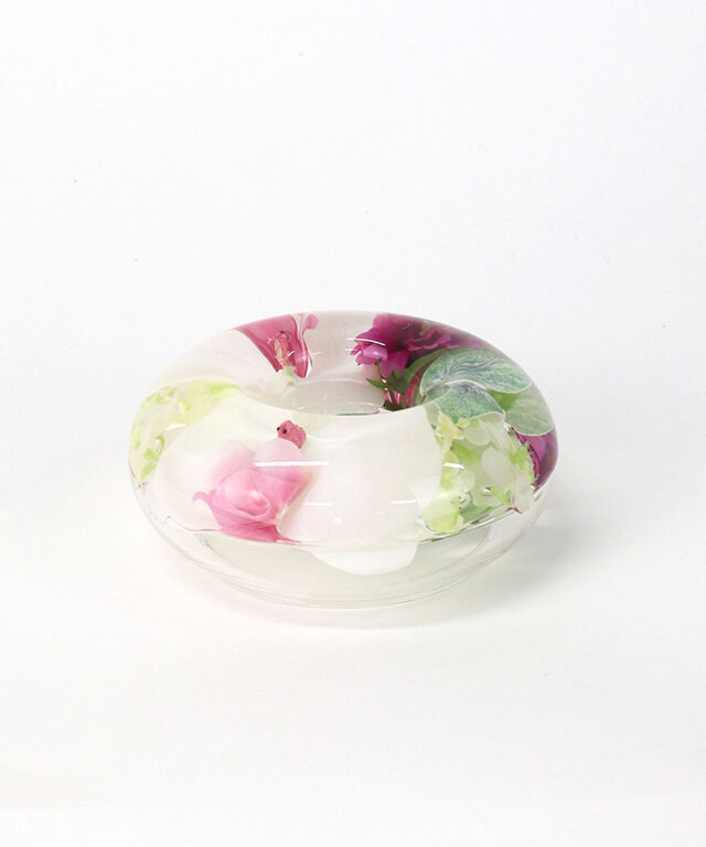 可憐なリップピンクのファレノプシスを閉じ込めた、透明感あふれるキャンドルホルダー。
