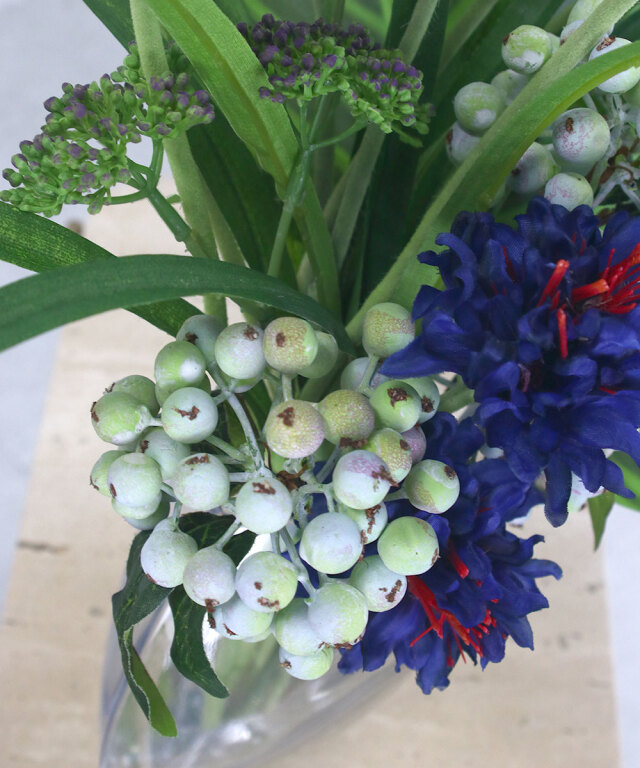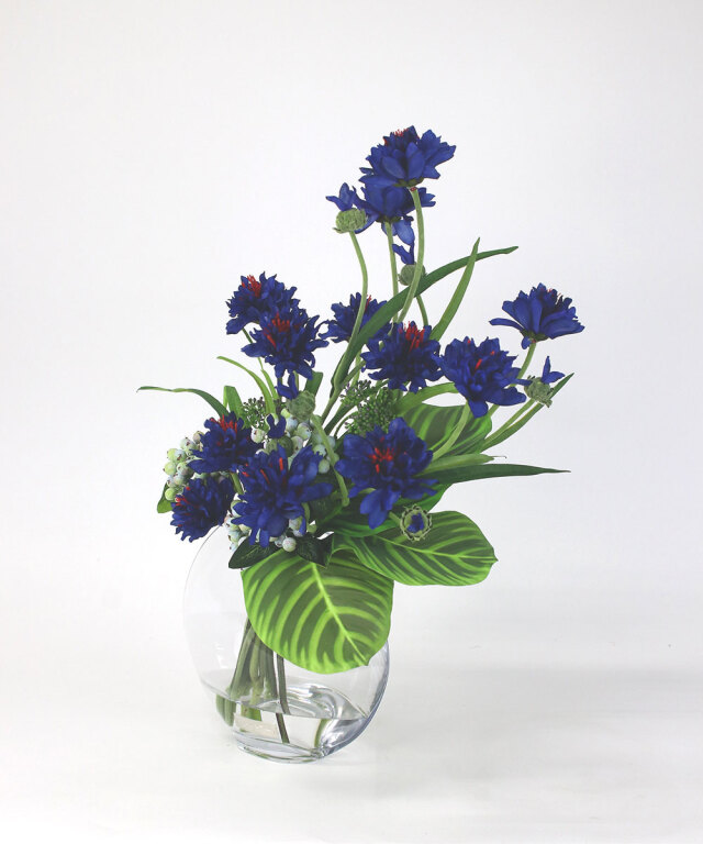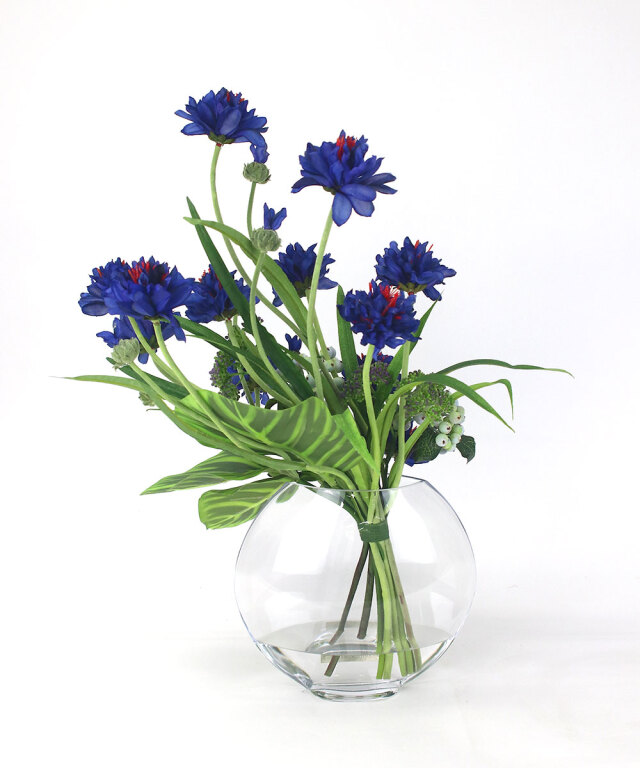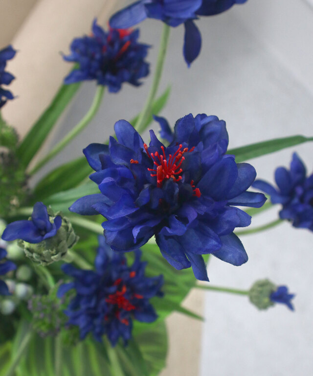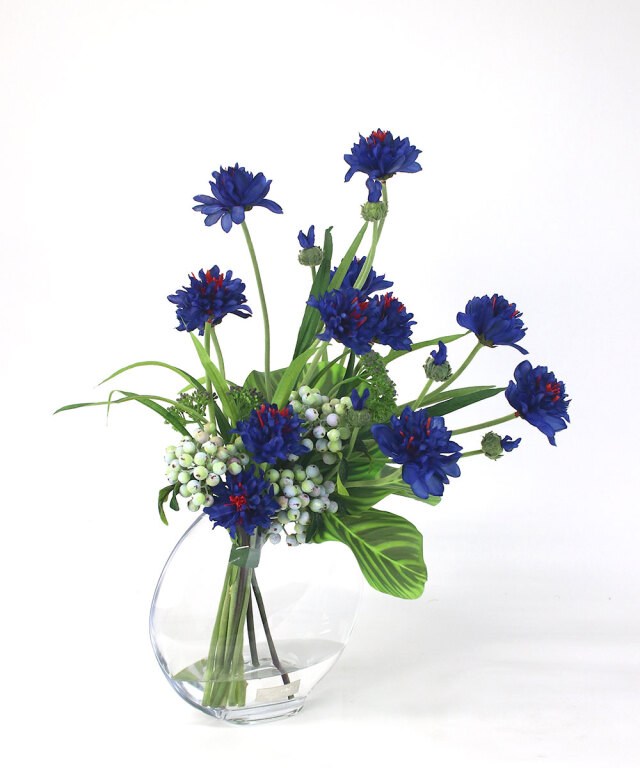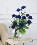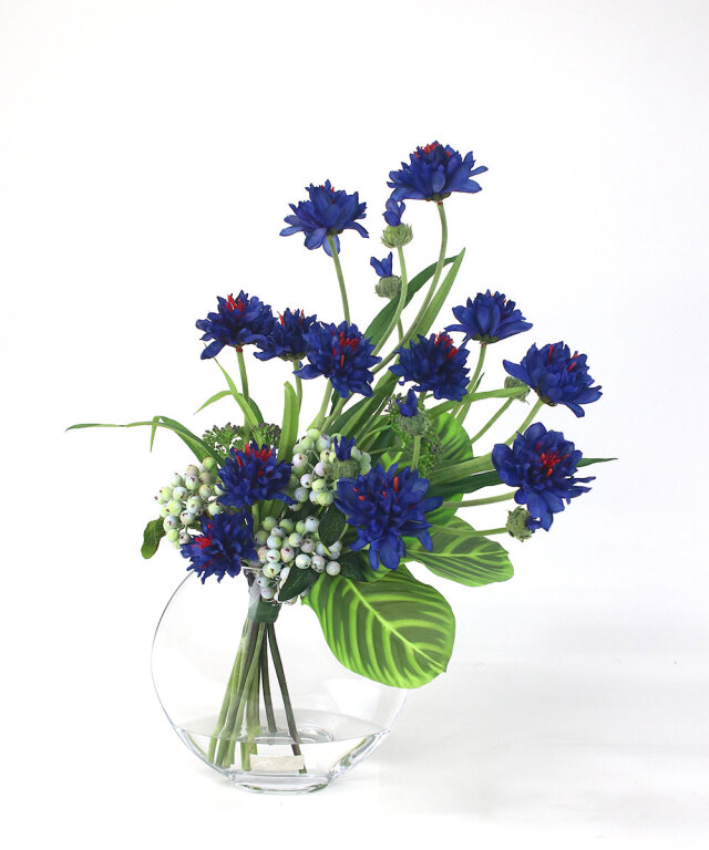 爽やかなブルーが印象的な、コーンフラワーのアレンジメント。