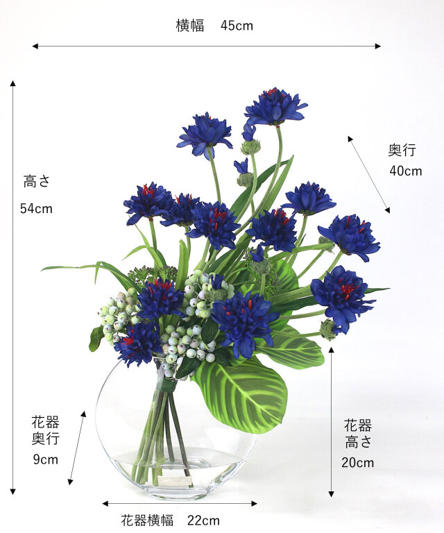 | 主材 | 花材:ポリエステル・プラスチック 花器:ガラス |
