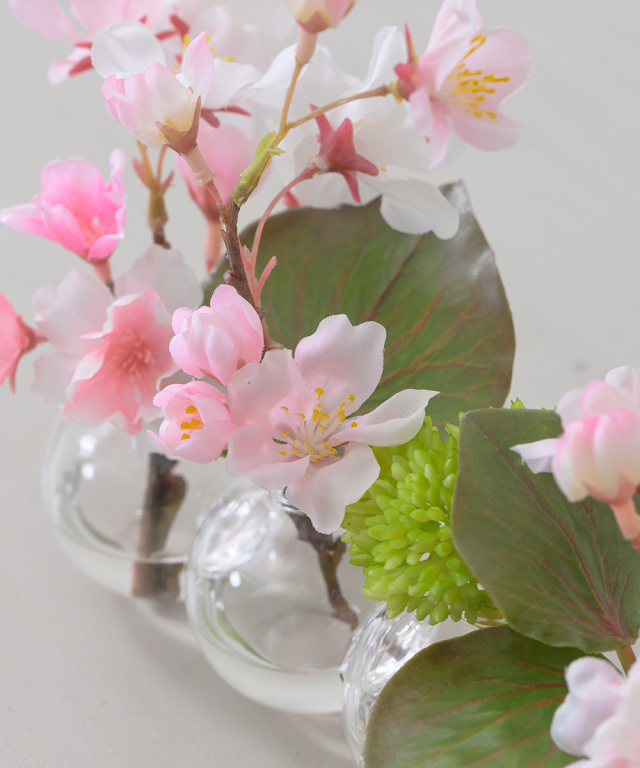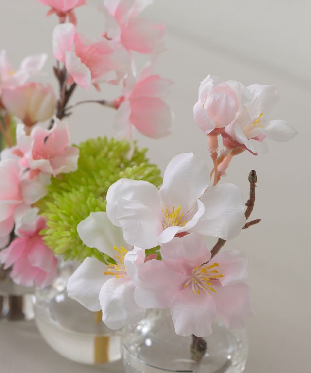花びらの質感や色の濃淡まで丁寧に再現した、上質なアートフラワーのサクラ。