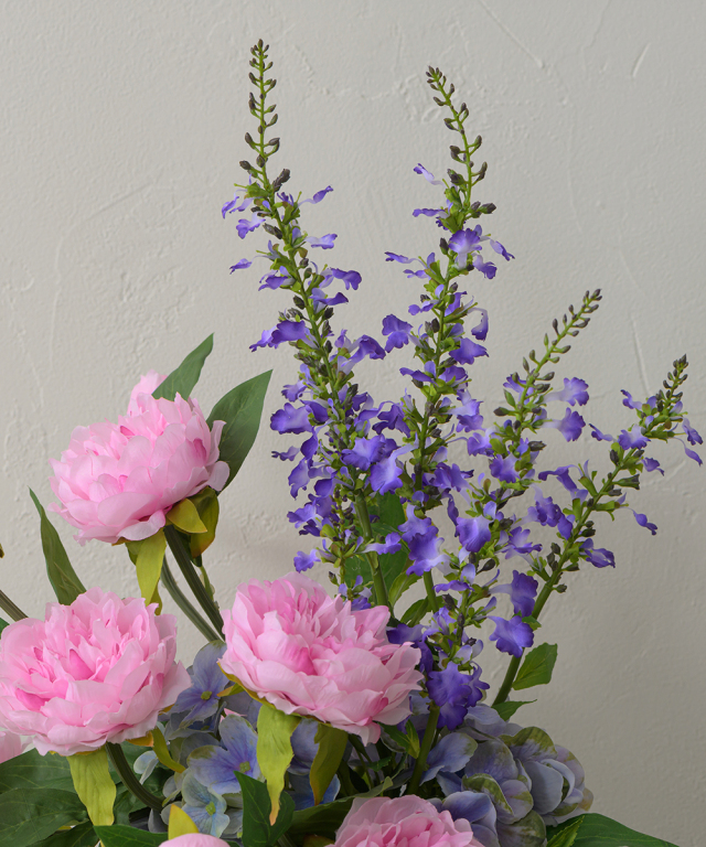 使用花材:ピオニー・サルビア・アジサイ