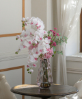 使用花材:ファレノプシス・ミニスカビオサ・アジサイ・ユーカリ