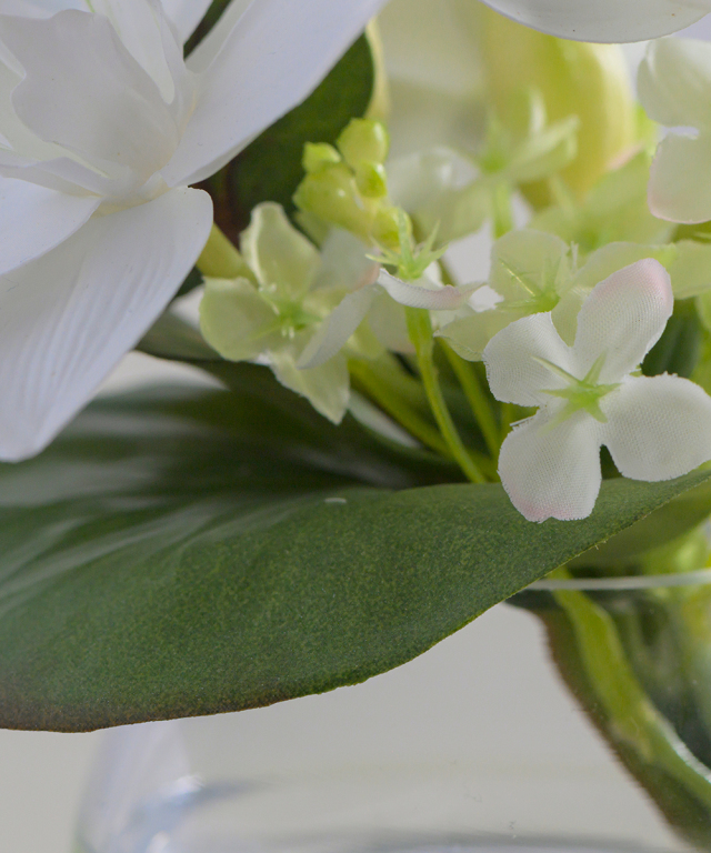 | 主材 | 花材:ポリエステル・プラスチック 花器:ガラス |
