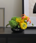 黒花器がモダンな印象を引き立て、和洋どちらの空間にも美しく調和する上質なデザインです。