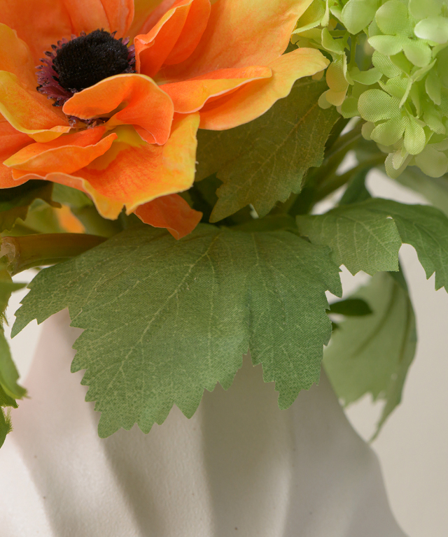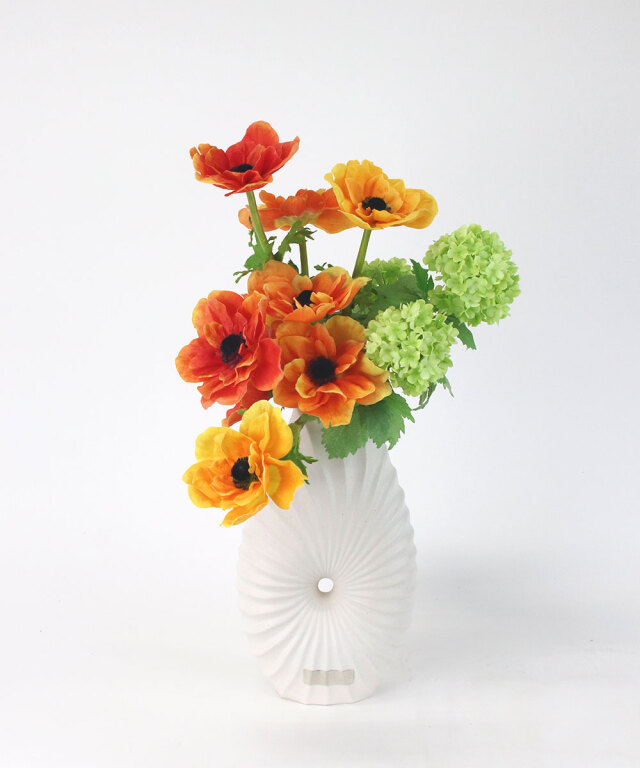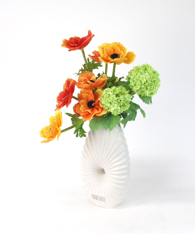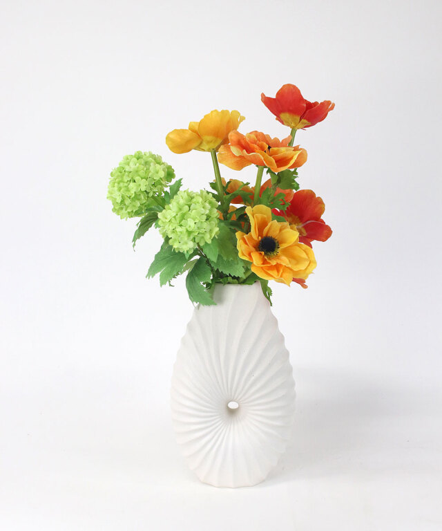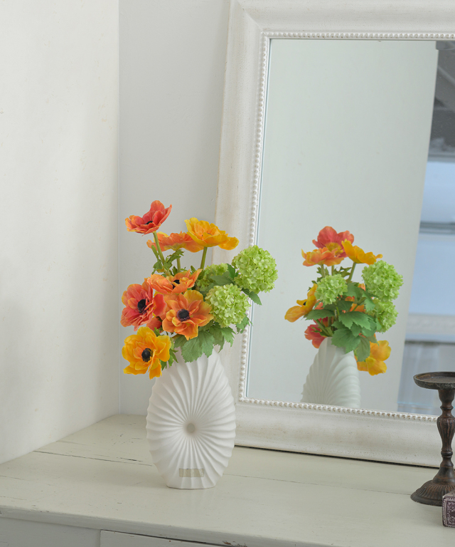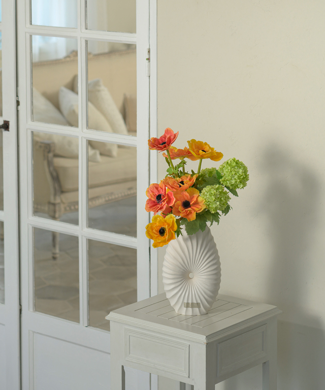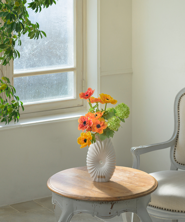艶を抑えたマットホワイトの質感は、どんな花材とも調和し、インテリアをモダンに引き立てます。