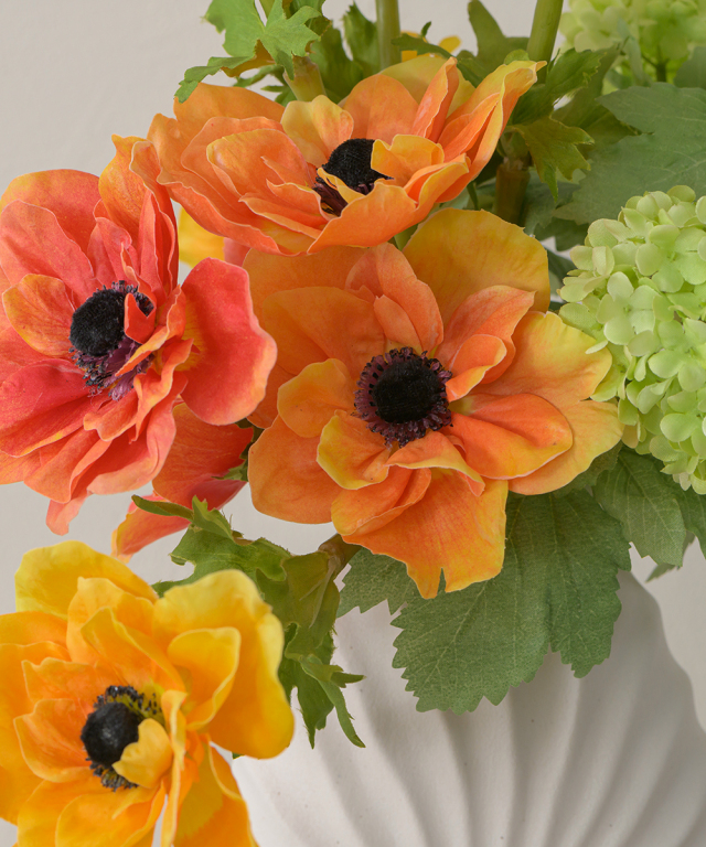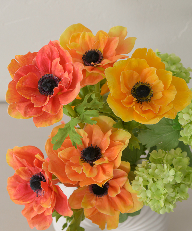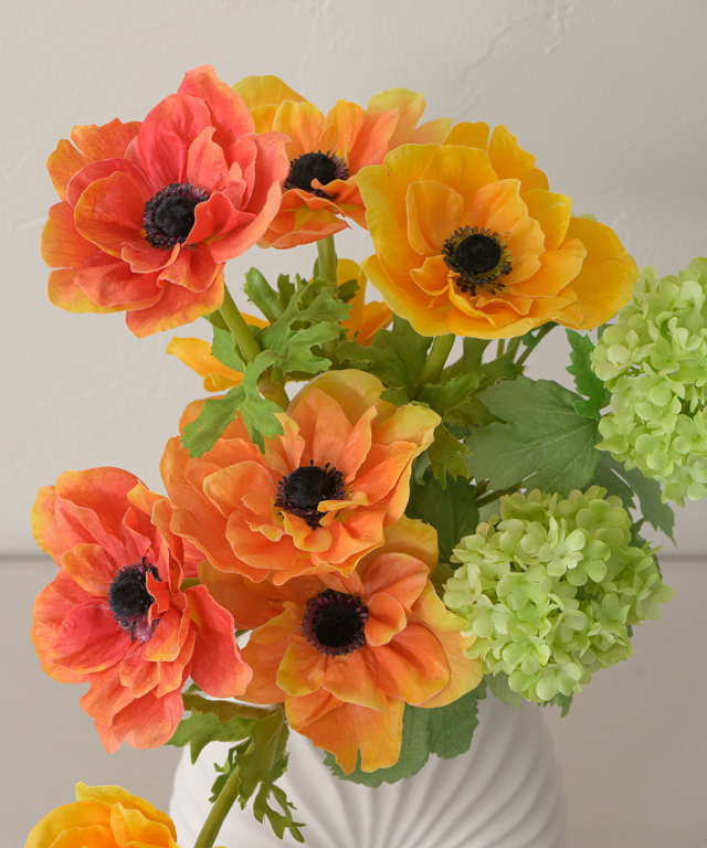 アネモネの花顔が際立つよう丁寧に配された彩り豊かなアレンジ。